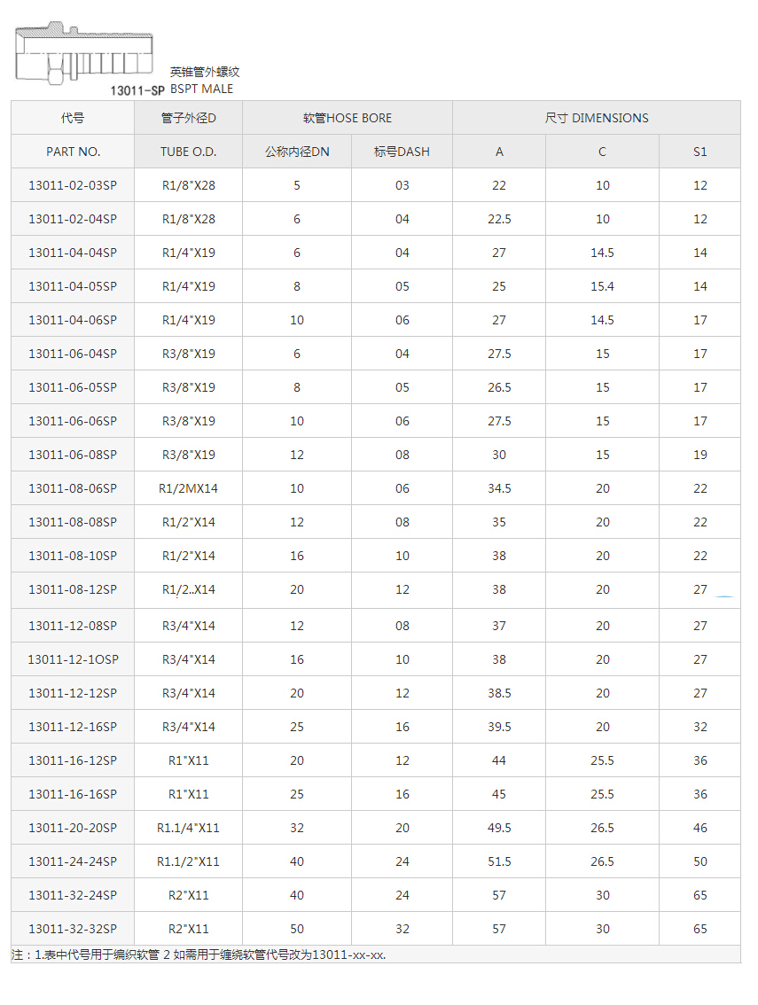 13011-SP英錐管外螺紋